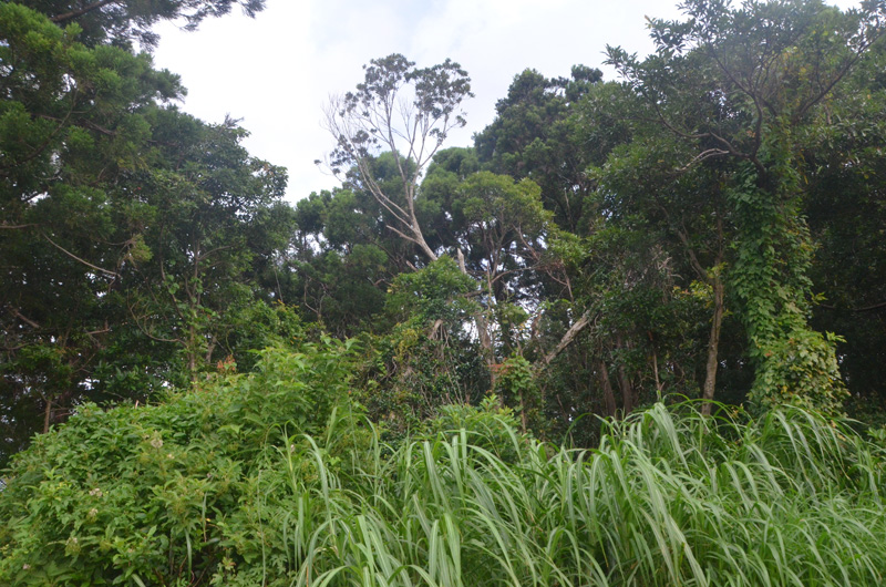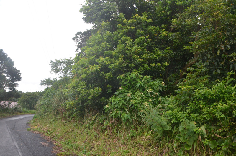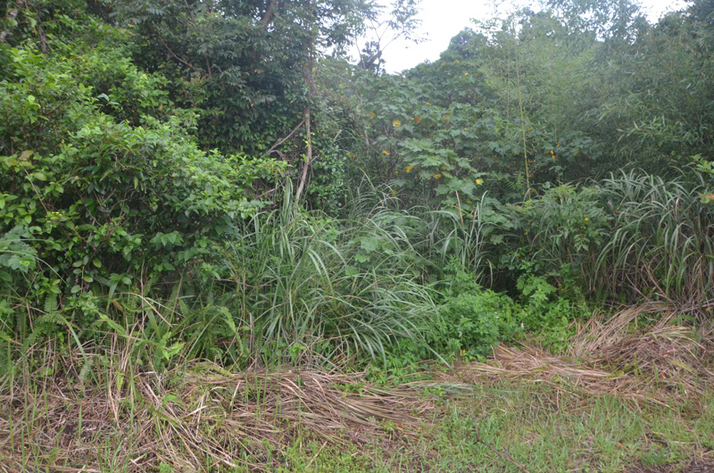 土地備考 手前はほぼ平坦だが草木が生い茂っている、起伏あり