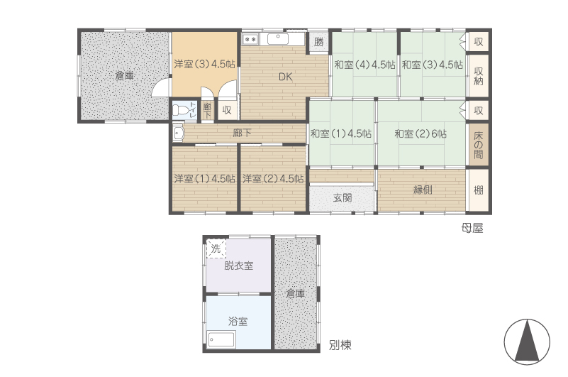 間取内容 間取図参照  和室 6畳 1室 和室 4.5畳 3室 洋室 4.5畳 3室