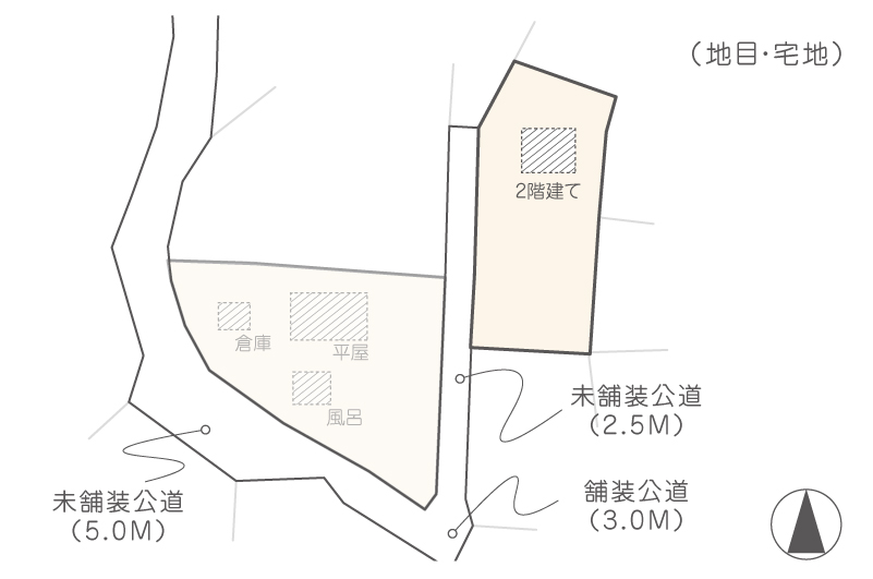 | 接道種別1 | 未舗装公道 | 接道幅員1 | 2.5m |