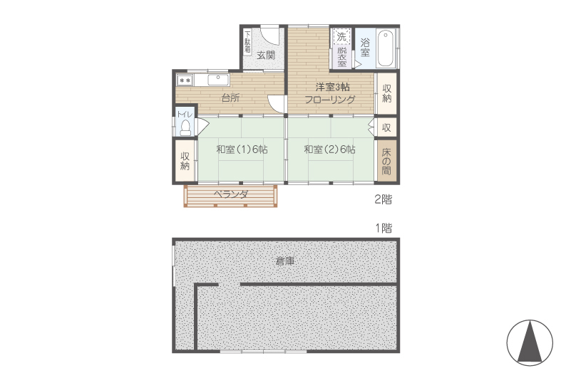 | 間取内容 | 間取図参照 和室 6畳 2室 洋室 3畳 1室 | ||