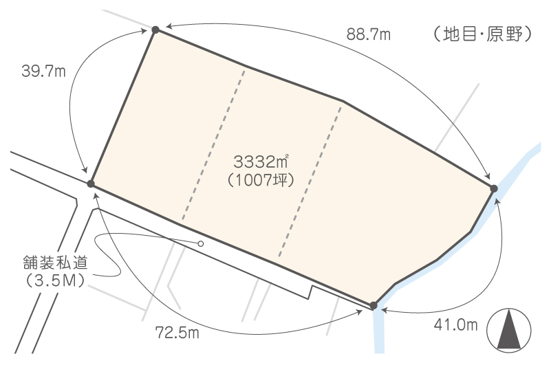 | 土地面積 | 3332m² | 土地面積(坪) | 1007坪 |