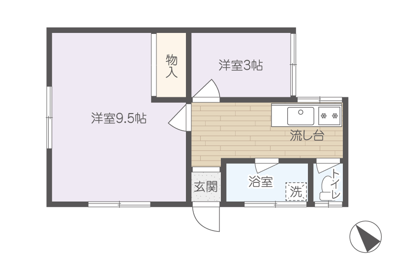 | 間取内容 | 間取図参照 洋室 9.5畳 洋室 3畳 K 約3畳 | ||